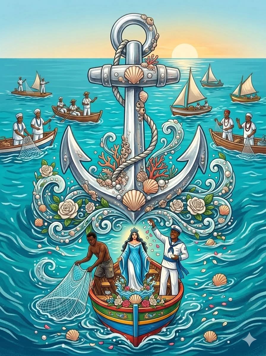 Quando um Marinheiro chega no terreiro, ele traz consigo o cheiro do salitre e a força das marés. Sob o comando da Rainha do Mar, esses espíritos trabalham na Linha das Águas com um propósito único: a purificação profunda. Assim como a onda que quebra na areia carrega tudo o que é impuro de volta para as profundezas, o passe de um Marinheiro "lava" a alma, levando embora as mágoas, o desequilíbrio e os obstáculos que travam nossos passos.
